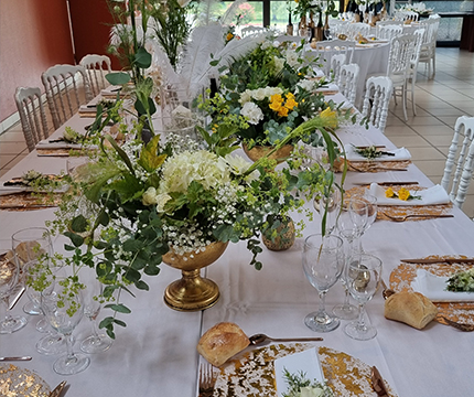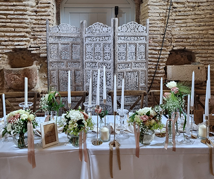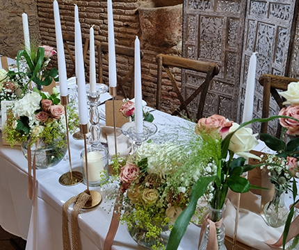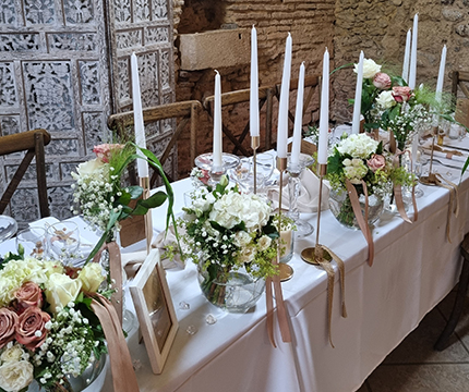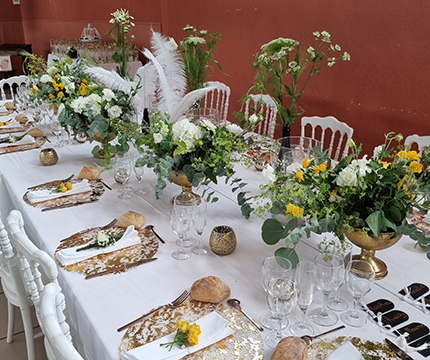 Je peux vous apporter également votre décoration florale, une décoration à votre demande suivant un thème, votre palette de couleurs, à l'écoute de vos envies, nous construisons ensemble votre événement, et surtout en fonction de votre budget.